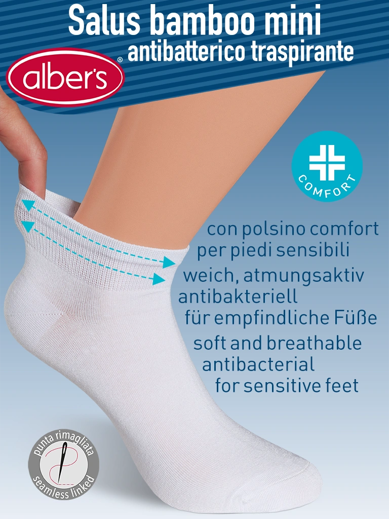 Soffice mini-calza uomo, antibatterico e traspirante per piedi sensibili con polsino comfort che non stringe.
