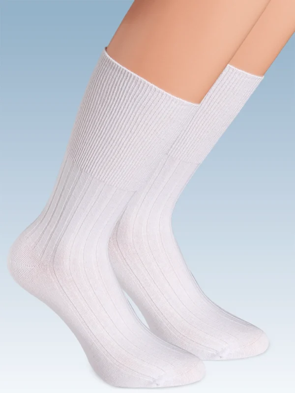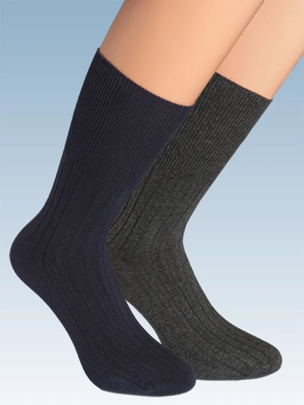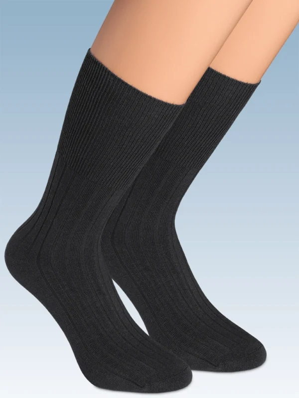 Calzino uomo sanitario in morbido cotone per piedi sensibili: con polsino senza elastico che non stringe e non scivola.
